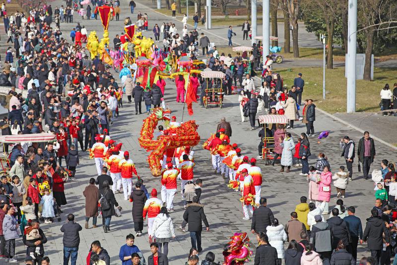 2月10日,西安樓觀生態(tài)文化旅游景區(qū)游人如織、熱鬧非凡,眾多市民游客到這里感受熱鬧祥和的新春氛圍。春節(jié)假期,樓觀景區(qū)推出以“到樓觀看社火逛大集”為主題的新春系列活動,鏗鏘的鑼鼓響徹云霄、歡騰的舞龍?jiān)品?、地道的竹馬看點(diǎn)十足,熱鬧的社火精彩紛呈......還有來自天南海北的特色美食,聚攏起秦嶺山下的煙火大集,為廣大市民游客帶來一場豐富多彩、傳統(tǒng)地道的年俗之旅。