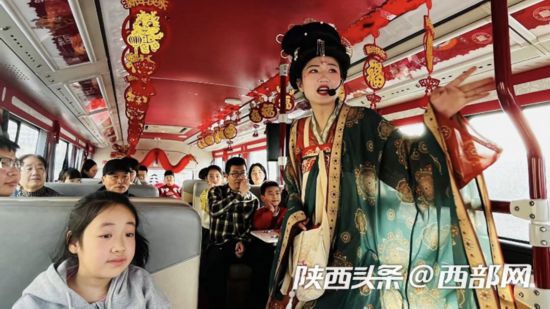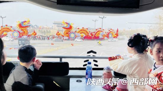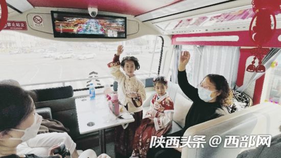 燈火暖長(zhǎng)安,龍啟中國(guó)年。新春佳節(jié),西安特推出龍年主題城市觀(guān)光車(chē),車(chē)內(nèi)張燈結(jié)彩,春節(jié)的氛圍感十足,市民乘坐觀(guān)光車(chē)即可一站式賞大唐風(fēng)華,看西安街頭花燈璀璨。
